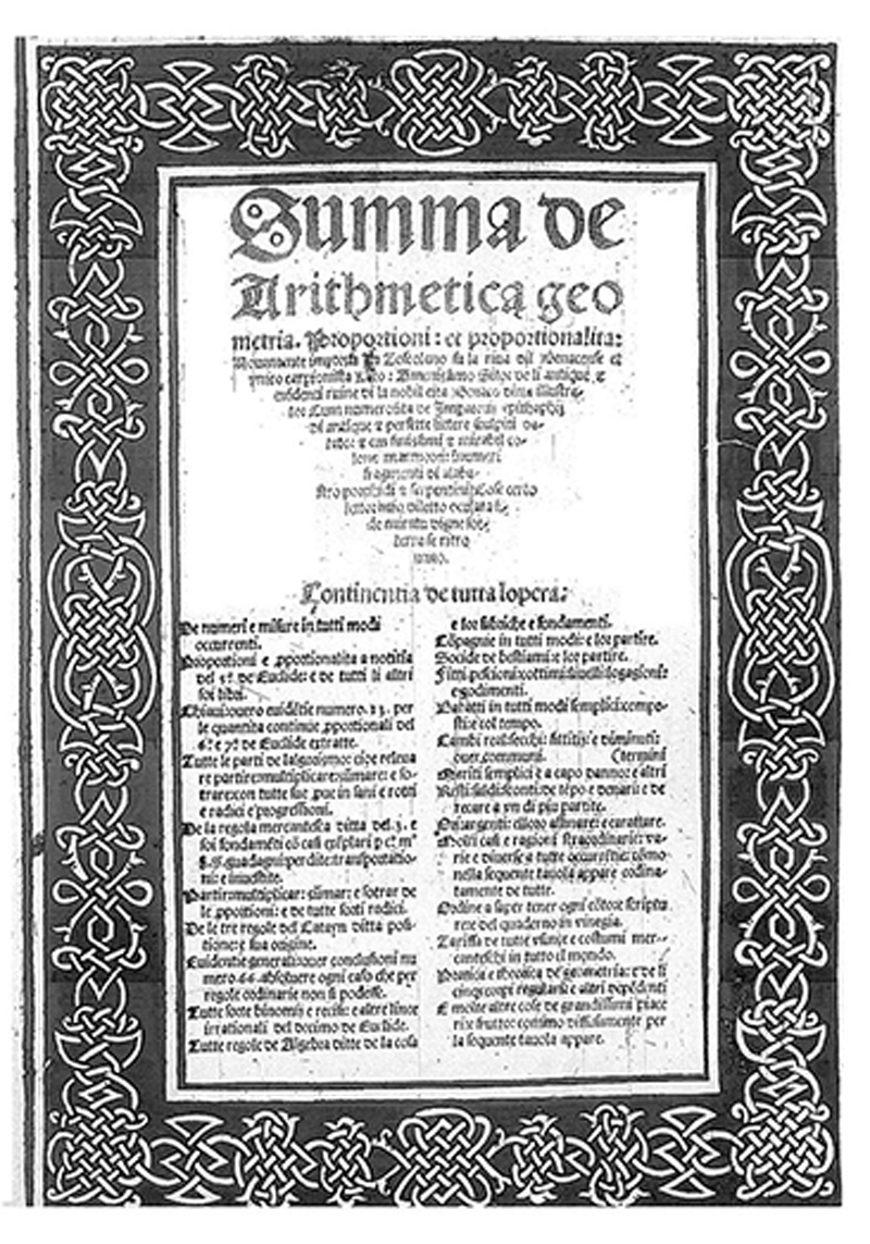 リンク:数学者・修道士のルカ・パチョーリの数学書 スムマ